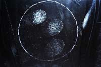 Test 6 - Tretman bez hemikalija: Otisci na jednokratnim rukavicama od lateksa bez talka su bili obrađivani samo crnim želatinskim folijama. Slike 13 i 14 pokazuju rezultate prvog i drugog podizanja.